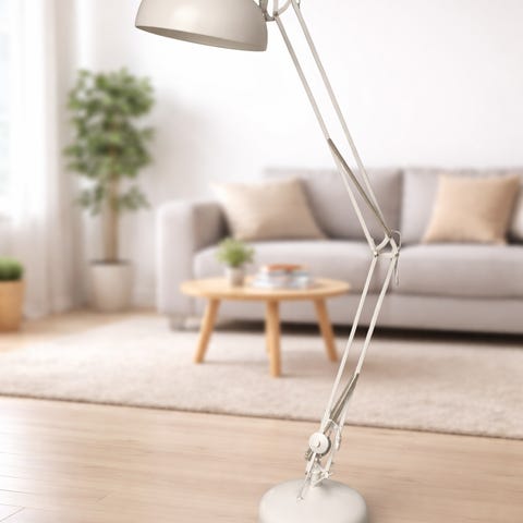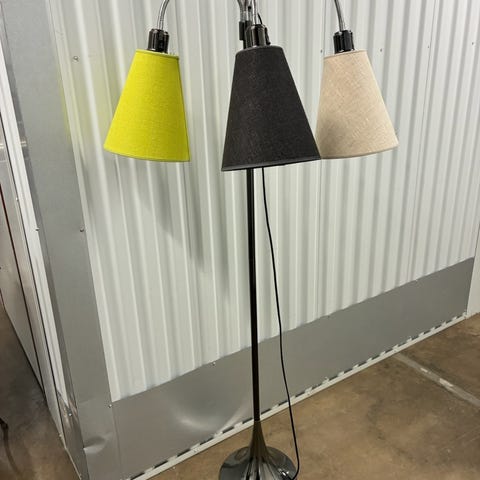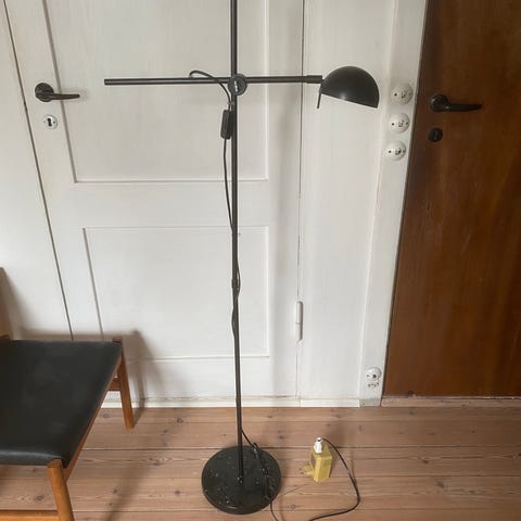 Sælger denne flotte Traffic gulvlampe i moderne design. Lampen har tre justerbare skærme i sort, rød og natur, som giver et hyggeligt og fleksibelt lys – perfekt til stue, hjørne, læsekrog eller kontor.