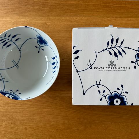 Royal Copenhagen porcelænssæt skåle kande fade og vase hvid med blå dekoration