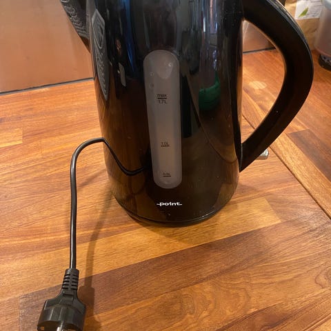 Cook & Baker elkedel med kapacitet på op til 1 liter. Elkedlen er udført i lyseblå plast med sort håndtag og bund samt indvendig bund i metal. På siden er der vandstandsindikator med markeringer fra 0,5 liter til 1 liter. Elkedlen har aftageligt låg og tilsluttes med almindelig netledning med stik. Velegnet til opvarmning af vand til f.eks. te, kaffe eller madlavning i køkkenet.over 2 år. Fejler intet