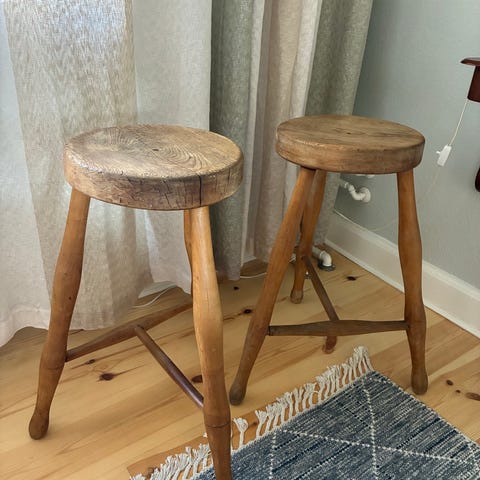 Vintage taburet i træ og flet