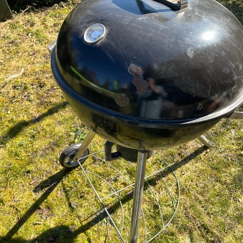 Kuglegrill i lille størrelse med grønt metal låg og sort bund. Grillen har bærehåndtag på låget og ventilationsåbning i metal på toppen. Indvendigt er der rund grillrist i metal. Velegnet som kompakt grill til f.eks. altan, terrasse eller picnic, hvor der er behov for en mindre kulgrill.