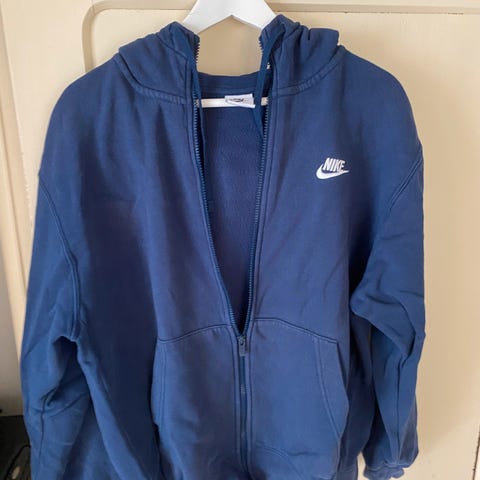 Blå Nike cardigan, str L. Brugt med pæn
