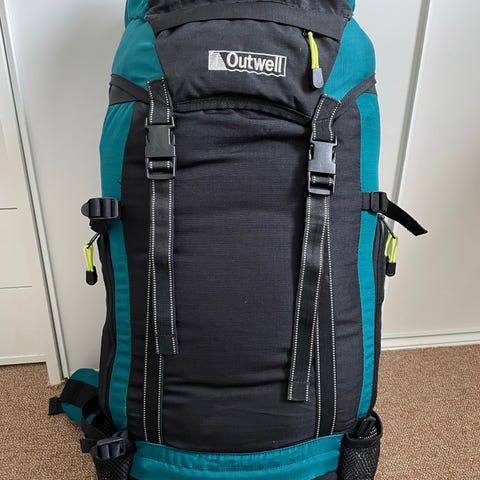 Sælger min Canyon 65x10 liter Outwell rygsæk i sort med flere justerbare remme og polstrede skulderstropper. Den er lidt brugt,men er i perfekt stand som ny.