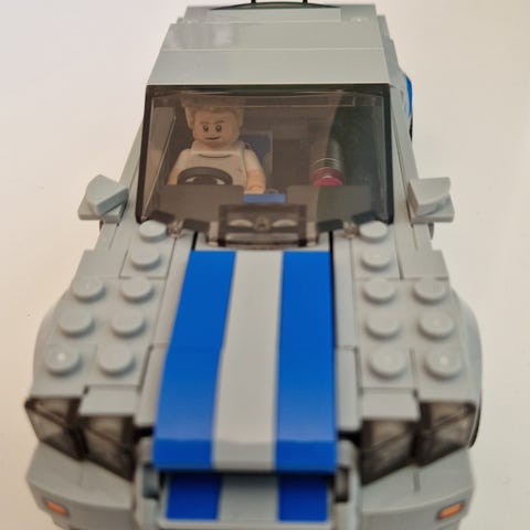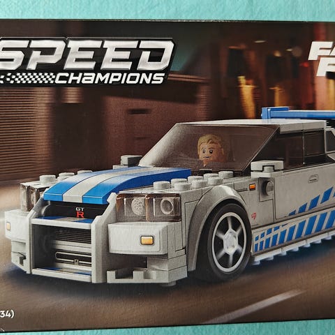LEGO 76817 Speed Champions Nissan Skyline GT-R (R34) byggesæt. Sættet forestiller den ikoniske Nissan Skyline GT-R (R34) fra Fast & Furious-serien i grå med blå striber og aerodynamiske detaljer. Modellen er velegnet til leg og udstilling og indeholder en minifigur, der kan placeres i bilen. Egnet til LEGO fans, der samler på Speed Champions og bilmodeller.