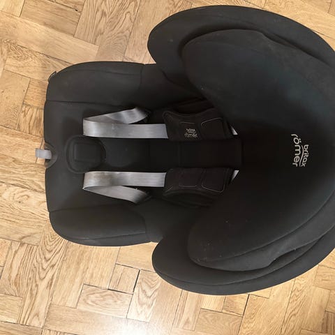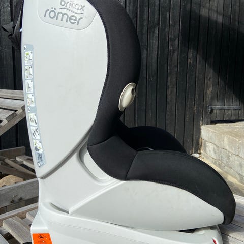 God med brugt autostol. Helt ny flamingo hovedstøtte.