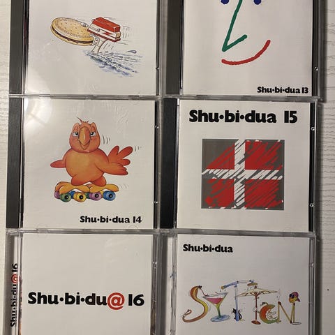 Shu-bi-dua Shu-bi-læum 73-98 CD boks med 3 CD’er. Udgivelsen samler numre fra perioden 1973-1998. Boksen indeholder tre farvede skiver (gul CD1, blå CD2, grøn CD3) samt booklet med information og billeder af bandet. Trackliste står på bagsiden af coveret og omfatter både enkeltstående sange og medleys fra Shu-bi-duas repertoire i de nævnte år.