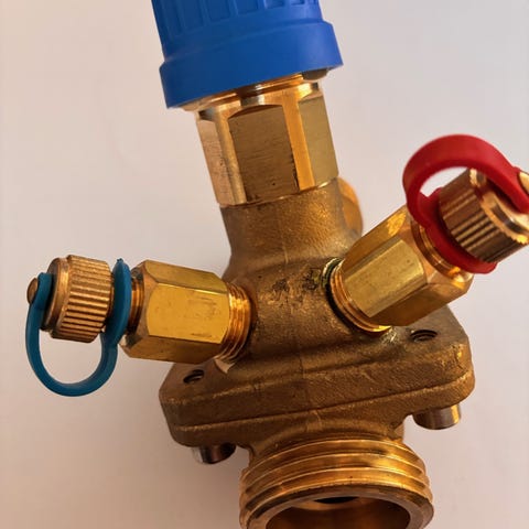 Danfoss AB-QM 003Z1212 trykuafhængig indregulerings- og reguleringsventil til balancering og regulering af vandbaserede varme- og kølesystemer. Ventilen er udført i messing med blå indstillingshætte og integrerede måleudtag. Anvendes typisk i HVAC-installationer, hvor der ønskes trykuafhængig regulering og præcis indregulering af flow i rørinstallationer. Leveres i original emballage med tilhørende komponenter som vist på billederne.