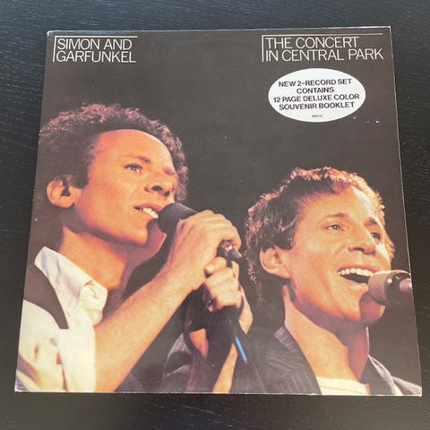 Simon & Garfunkel The Concert in Central Park lp. Livealbum optaget i Central Park, New York. Udgivelse på vinyl med dobbelt-lp og originalt cover med fotos og nummeroversigt på bagsiden. Egnet til samlere af Simon & Garfunkel og liveindspilninger på lp.
