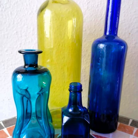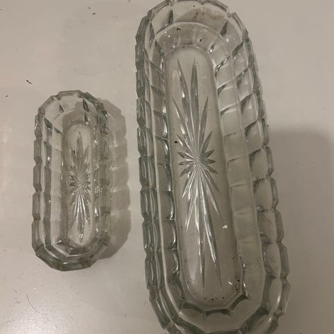 4 stk Chromeplated glas/flaske bakke, med vindrue ranker rundt i kanten og ciseleringer på midten !