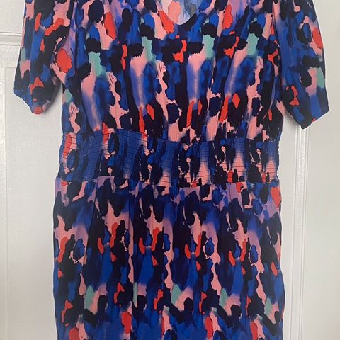 Blå kjole med kort ærme gennemknappet med blå blomster str XL
