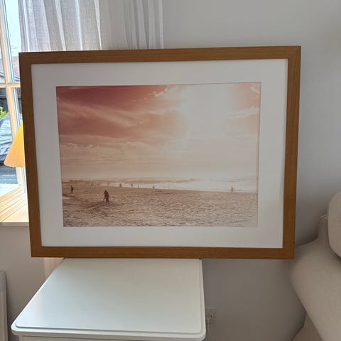 Størrelse er 39x105 cm. Som ny med små ridser på rammen. Du kan hente i Bagsværd.