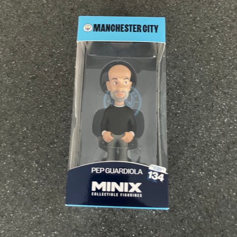Minix Manchester City Haaland figur. Samlefigur i boks med Manchester City-tema og trykt spiller navn. Figuren leveres i original emballage med klublogo og serienummer på æsken. Velegnet som samlerobjekt eller som pynt på hylde eller skrivebord.