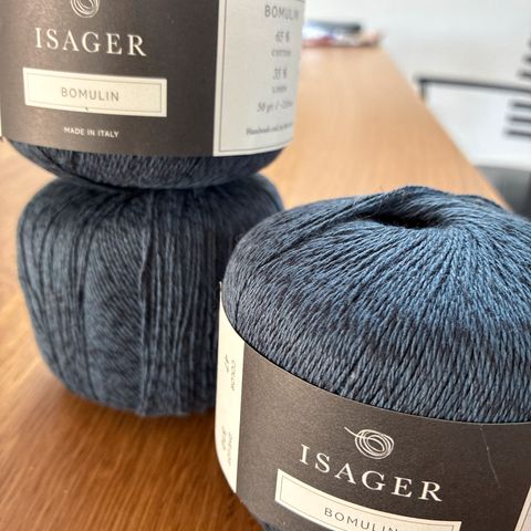 Delvist ubrugt garn fra Isager vundet op på nøgler fra fed. Noget af garnet er fra en kuldsejlet UFO - også vundet op på nøgler igen.