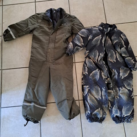 Flyverdragter og heldragter brugt meget lidt over vinteren og er stadig i god stand.