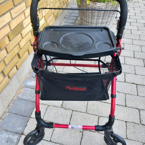 Flot og velholdt rollator i aluminium med kurv og ryglæn