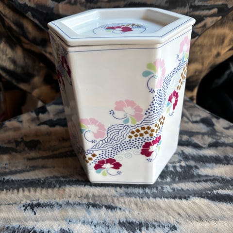 Bing & Grøndahl sekskantet porcelænskrukke med låg. Nr: 1827/5970.