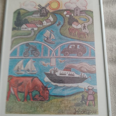 Heerup 84,indrammet & i passepartout; Heerup " Forglemmigej " desværre falmet, Heerup blåt billede, Heerup tryk,se & hent i Esbjerg .. Ps : Mål 53 x 53 x 3 cm