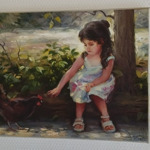 Oliemaleri, S. LAMBOCK, motiv: Børn/Babyer, stil: Naturalistisk, b: 54 h: 65, FLOT OLIEMALERI MED GULDRAMME AF S. LAMBOCK. "DEN SØDE DRENG" STÅR DER PÅ BAGSIDEN.