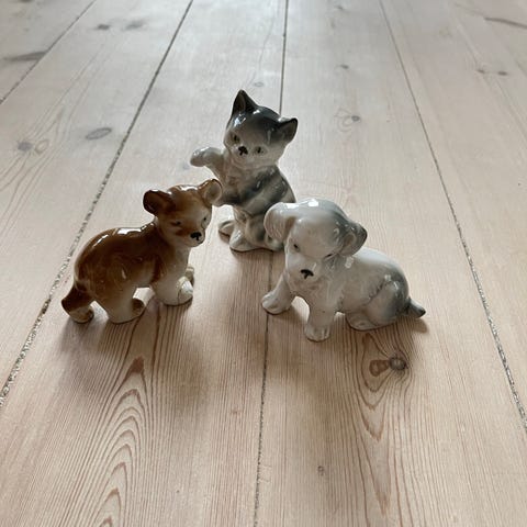 Porcelænsfigurer med motiver af børn og dyr i blå og hvide nuancer. Figurenes højder varierer, og de forestiller blandt andet legende børn, børn med dyr samt fugle. Egner sig til dekoration i reol, vitrineskab eller på hylde. Sælges som samlet parti efter aftale med sælger.