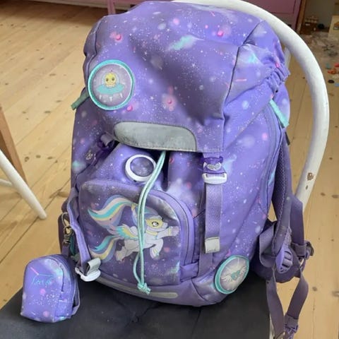 Beckmann skoletaske med enhjørningemotiv i flerfarvede pastelnuancer og lilla detaljer. Rigtig lækker skoletaske med masser af gode detaljer. Perfekt som første skoletaske.