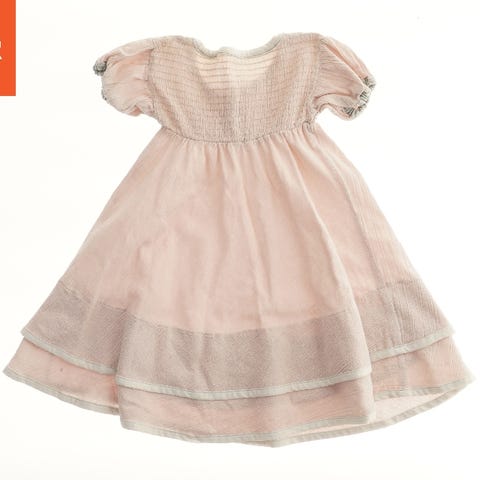 Kjole, OkkerGokker øko bomuld kjole m. bindebælte, OkkerGokker, str. 128, Økologisk bomuld sød kjole-jakke med bælte; Okker- Gokker, str. 6-8 år, 128 cm. Med perlemorsknapper, en af knapperne er faldet af..