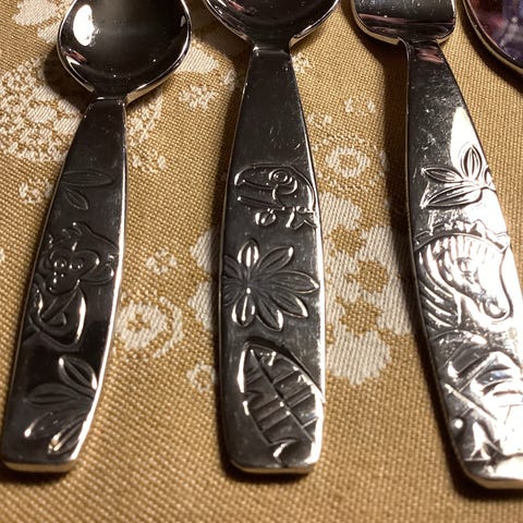 Bestik sæt i rustfrit stål med mønstrede skafter. Sættet består af kniv, gaffel og ske i samme design. Egnet til daglig brug ved spisebordet, fx til hovedretter og desserter. Designet er neutralt og kan kombineres med forskellige typer service. Pr. Sæt 100,- kr samlet for 3 sæt 250,- kr