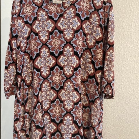 Kjole mrk. Masai, str. XS, Rustfarvet, Næsten som ny, 1 kjole med korte ærmer sælges for 70 kr. (kjolens brystmål 86 cm.
