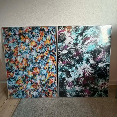 Sælger to lærredsprint fra Bracher. Det er print på rigtigt lærred monteret i sorte trærammer.