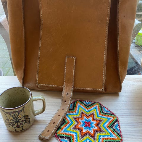 Virkelig fin lille retro rygsæk i kernelæder. Som ny.