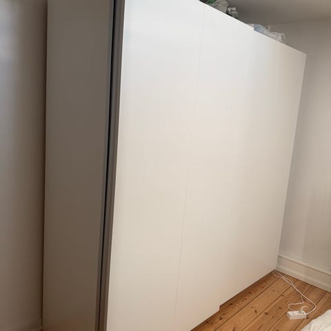 Vi sælger vores flotte og funktionelle PAX garderobeskab, som indeholder: