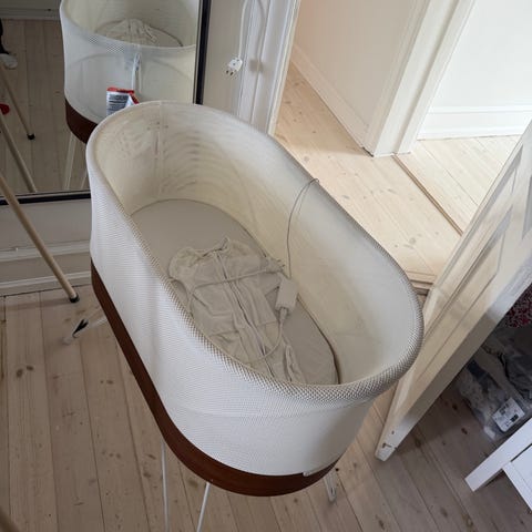 Sælger vores SNOO smart babyseng fra Happiest Baby. SNOO er udviklet i samarbejde med børnelæger og hjælper baby med at sove roligere ved hjælp af blid, vuggende bevægelse og beroligende lyde, som automatisk tilpasser sig babyens behov.