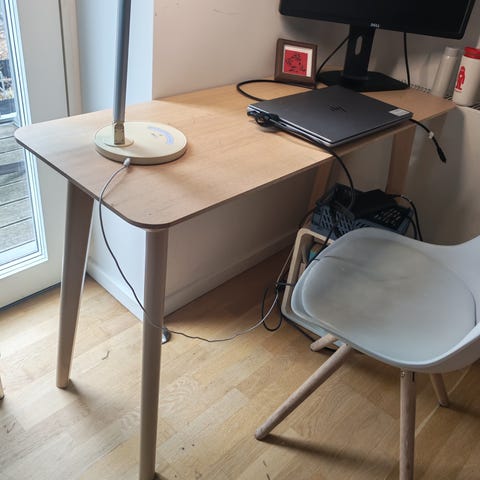 De 2 akustikpaneler kan medfølge for 300kr. De virker rigtigt godt til at tage den den rumklang man bliver skør af når man sidder og arbejder.