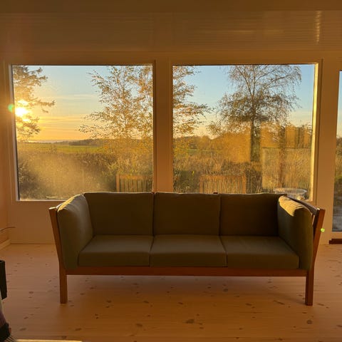 Andreas Hansen sofa i lakeret bøg med lyst uldstof - brugt