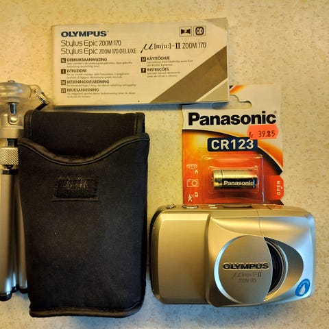 Kameraet sælges med to stk CR123A batterier (brugte men gode) og original taske (med skader, se sidste billede.