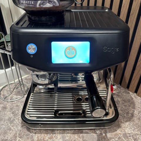 Sage Barista Touch. Meget velholdt og rengjort - helt perfekt til nybegyndere som jeg var, da skærmen fortæller hvad man skal gøre.