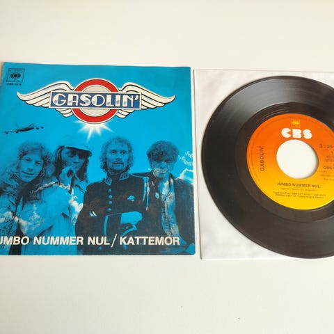 Gasolin’ Jumbo Nummer Nul / Kattemor vinyl single. Singlen er udgivet på CBS og indeholder nummeret "Jumbo Nummer Nul" på A-siden og "Kattemor" på B-siden. Standard 7" plade med originalt omslag med bandfoto og titeltryk på forsiden.