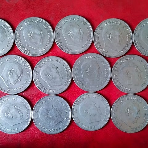 MARGRETHE II 1 KR KRONE 1973 - 1989 KOMPLET 17 Stk! 1 Krone 1973 - 1989 Margrethe II Copper-nickel • 6.8 g • ø 25.5 mm KM#862