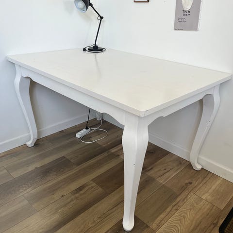 Praktisk og pænt retro spisebord i træ. Kan også bruges som skrivebord eller hobbybord. Fejler intet, men slibning og ny lakering vil gøre bordet godt.