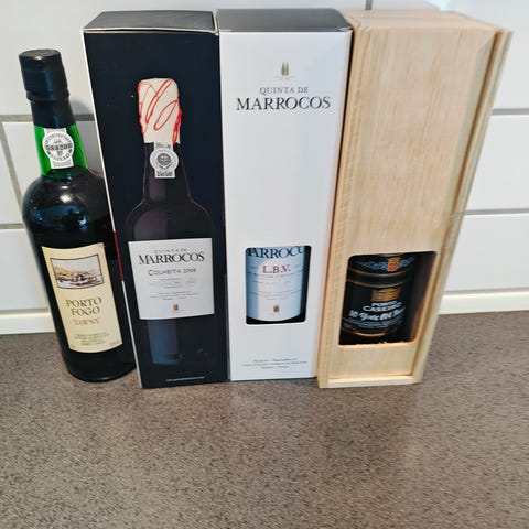 Bemærk at kassen er uåbnet og har derfor ikke selv kigget til flaskerne.