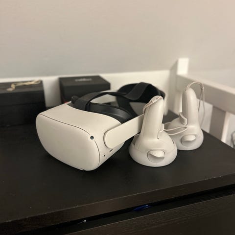 Sælger Oculus Quest 2 VR-headset med 128 GB lagerplads, købt i 2022. Brillerne er i ret god stand og fungerer fejlfrit. Har været brugt sparsomt og er passet godt på.