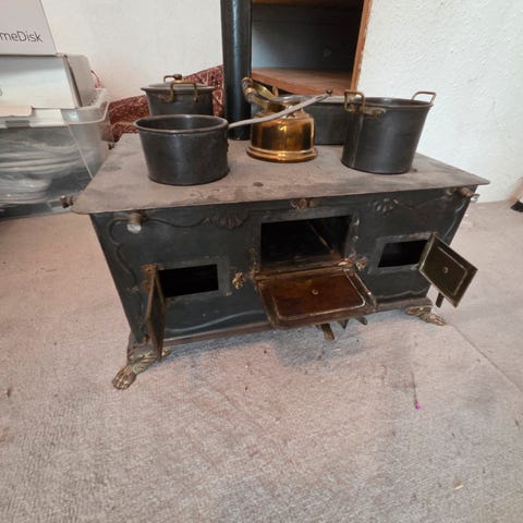 Andre samleobjekter, Komfur I jern, B 24cm D 15cm H 11cm Ca fra 1940er på A