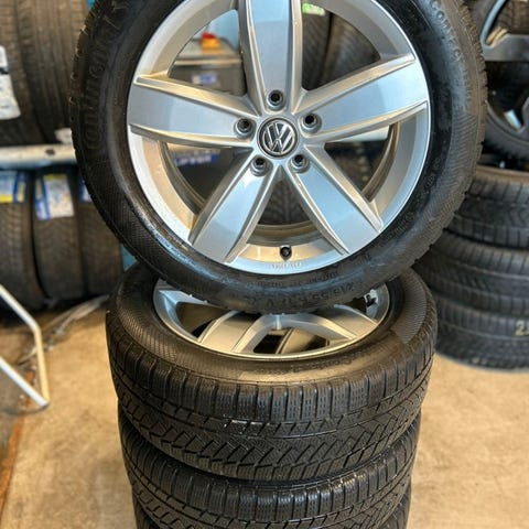 Sælger et komplet sæt originale Volkswagen Passat alufælge (17”) monteret med Continental vinterdæk 215/55 R17. 100% originalt fra VW Passat model 22. Brugt, men i rigtig flot stand, ingen skrammer fra kantsten, kørt 2 ½ sæson, ca 25.000 med masser af mønster tilbage. Klar til montering. • Fælge: Originale VW Passat alufælge 17” Dæk: Continental 215/55 R17 vinterdæk, kvittering haves