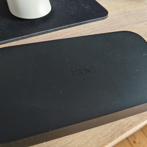 Philips Hue Play HDMI sync box medieboks i sort. Enheden bruges til at synkronisere Philips Hue-lys med billedindhold fra HDMI-kilder som f.eks. tv-bokse, spillekonsoller eller medieafspillere. Boksen har flere HDMI-indgange og en HDMI-udgang til tilslutning mellem kilder og tv. Kabinettet er kompakt og udført i sort plast med tilslutninger placeret på bagsiden. Egnet til brug i hjemmebiograf eller stue, hvor man ønsker lysstyring koblet til skærmens indhold.