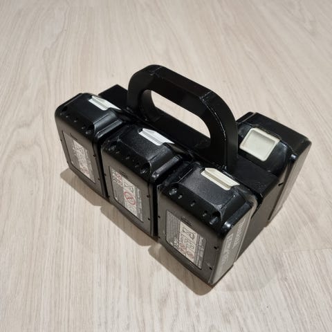 3D printet batteriholder med håndtag til 4 Makita LXT Batterier - de viste batterier medfølger ikke