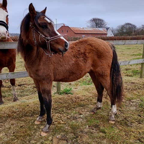 Sortbroget fin lille shetter, har været med til stævner, (dressur/spring) og bruges som elevhest i vores rideklub, hvor vi træner alt , Ridning ( dressur/spring) , agility, løsspring, samt kørt med, været til dyreskue, Ridelejr , skov og strandturer , juleturer ned i byen, hvor hun har givet trækturer for byens mindste borgere, er trækpony hver fredag for nye små ryttere. Og været partspony, for vores små partryttere i vores rideklub. Men da vi ikke har nok små elever, men et behov for større ponyer, så må hun desværre have et nyt hjem. Hun kræver rutinerede forældre til at trække med hende, da hun ellers ikke bryder sig om en trækker ved siden af hende ( hun napper lidt ud) men trækkes hun rigtig er der ikke noget. Hun kan rides selv af mindre rutinerede ryttere og er også sød ved helt nye små ryttere.