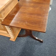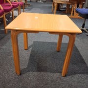 Tabletten er firkantet med glatte kanter og ben i bøgetræ. Overfladen er lys og glat.