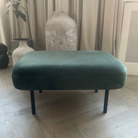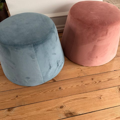 Puf i rosafarvet velourstof. Kan afhentes på Amager.