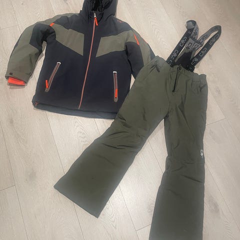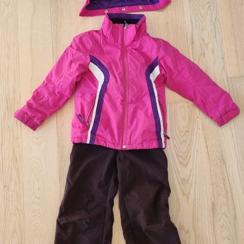 Alt tøjet er størrelse 128 og skihjemlen 54 cm.