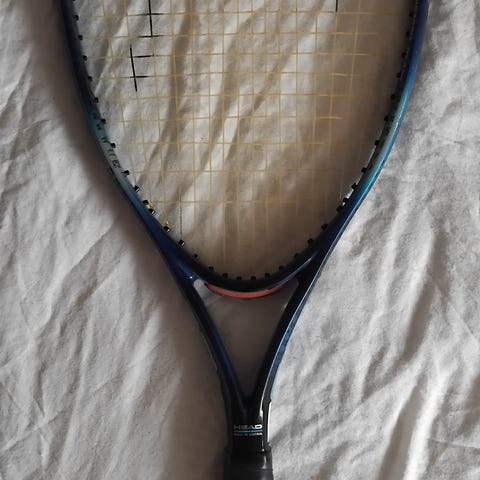 Ketchere med tilhørende cover. Ketcheren har sort greb og ramme i lyse farver med strengefelt. Coveret er hvidt med rødt motiv og bærestrop, som gør det nemt at transportere ketcheren til og fra hallen. Velegnet til begyndere , der skal bruge en let og håndterbar ketcher som man kan sætte net op og spille i haven!