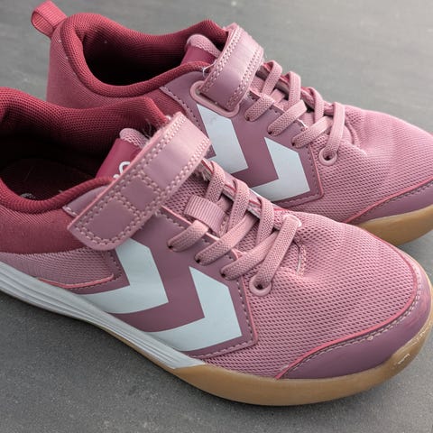 Filtede sko til børn i størrelse 30 - det ligner uld, men ikke sikker. Skoene er grå og har gummi slå. De har en justerbar velcrorem over vristen for nem på- og aftagning. Perfekt til små fødder. Der er lille læderdetalje foran på remmen. Egnede som hjemmesko eller indendørssko til børn. Kan ikke huske hvor de er købt. Uden huller eller andre fejl.